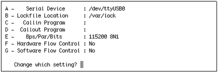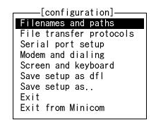 次に、minicom の設定を行うには、以下の手順を実行してください。