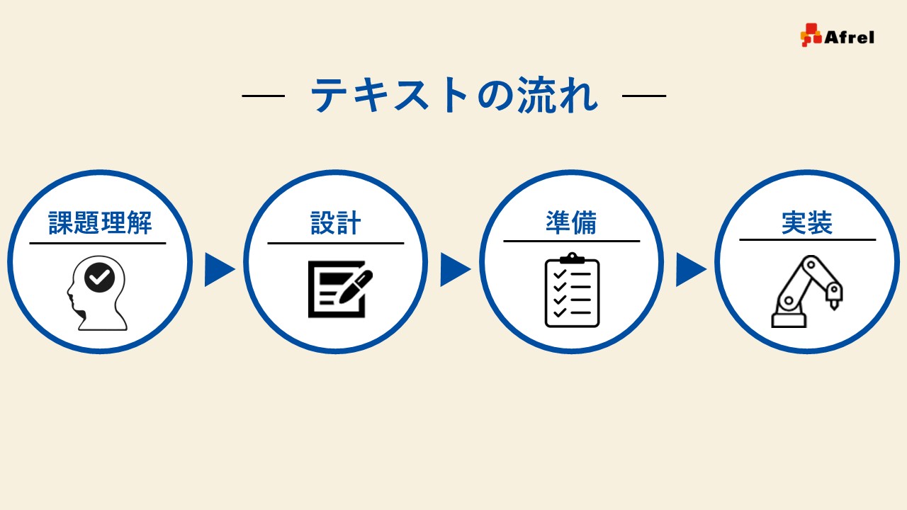 この課題集では、ロボット制御の学習を次の4つのステップで進める構成になっています。