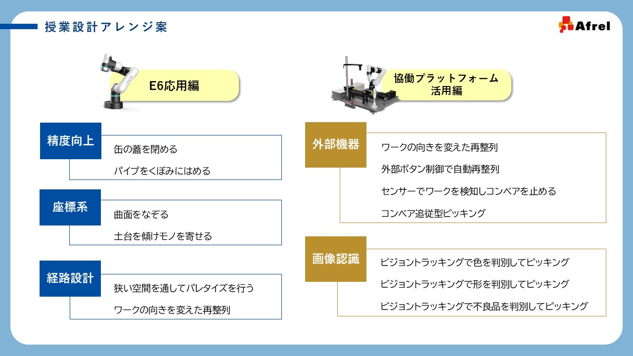 E6応用編と協働プラットフォーム活用編、その違いは使う機材だけではなく、育てたい視点や求められる設計思考にも違いがあります。