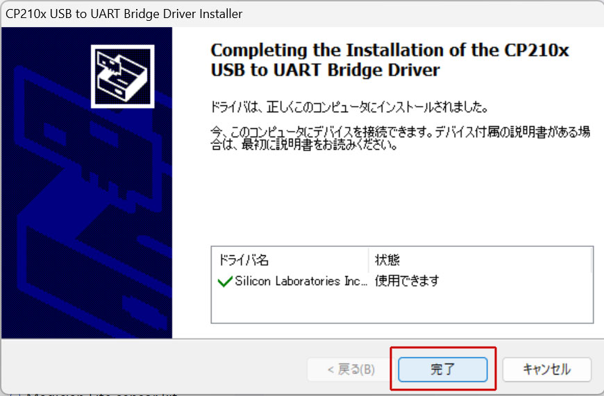 過去にドライバーをインストールしていた場合は、右のような画面になりますので同様に「OK」をクリックし終了してください。