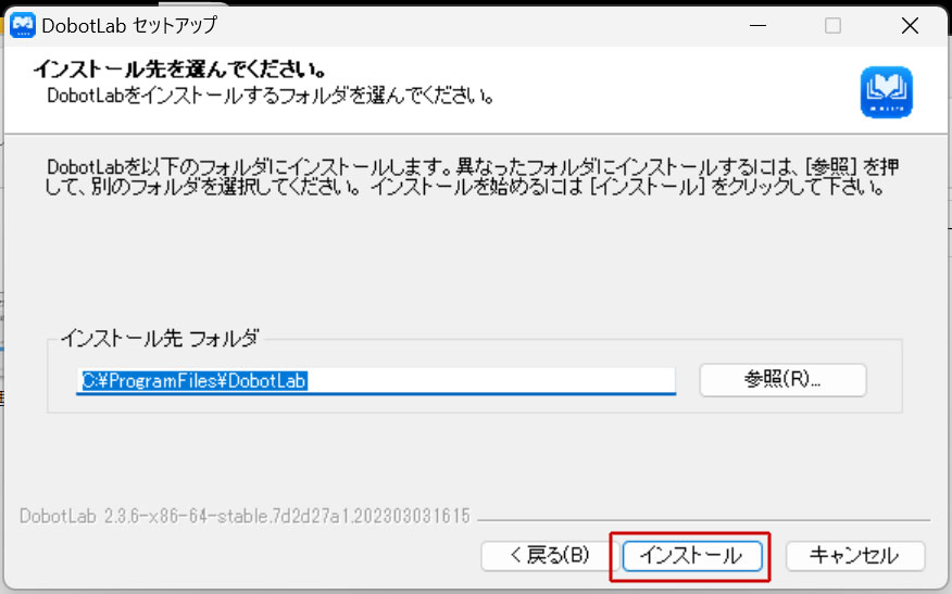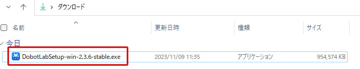 ダウンロードしたexeファイルを実行します。※11/9時点でのファイル名は「DobotLabSetup-win-2.3.6-stable.exe」
