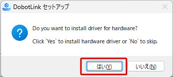 ※この表示が出ない場合は、DobotLabのインストールは完了になります。