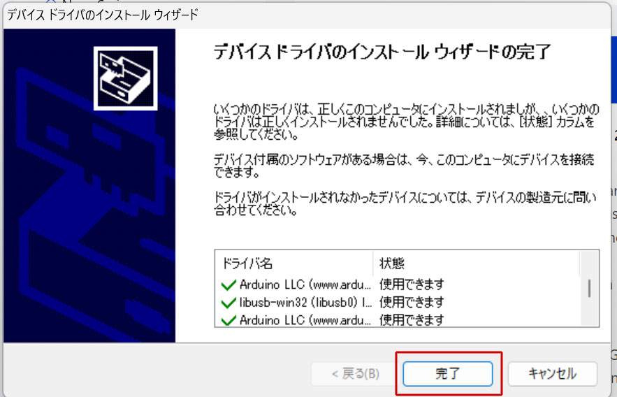 過去にドライバーをインストールしていた場合は、右のような画面になりますので同様に「OK」をクリックし終了してください。
