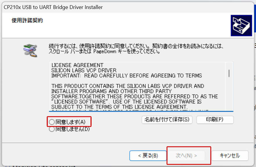 この画面で、「同意します(A)」をチェックし、「次へ(N)>」をクリックします。