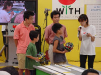 レース前に出場選手は、ロボットのセッティングをこのピットで行います。 ここでは、ウィズスタッフによるレゴマインドストームキャンプや、コミュニケーションパーク・ウィズの説明を行いました