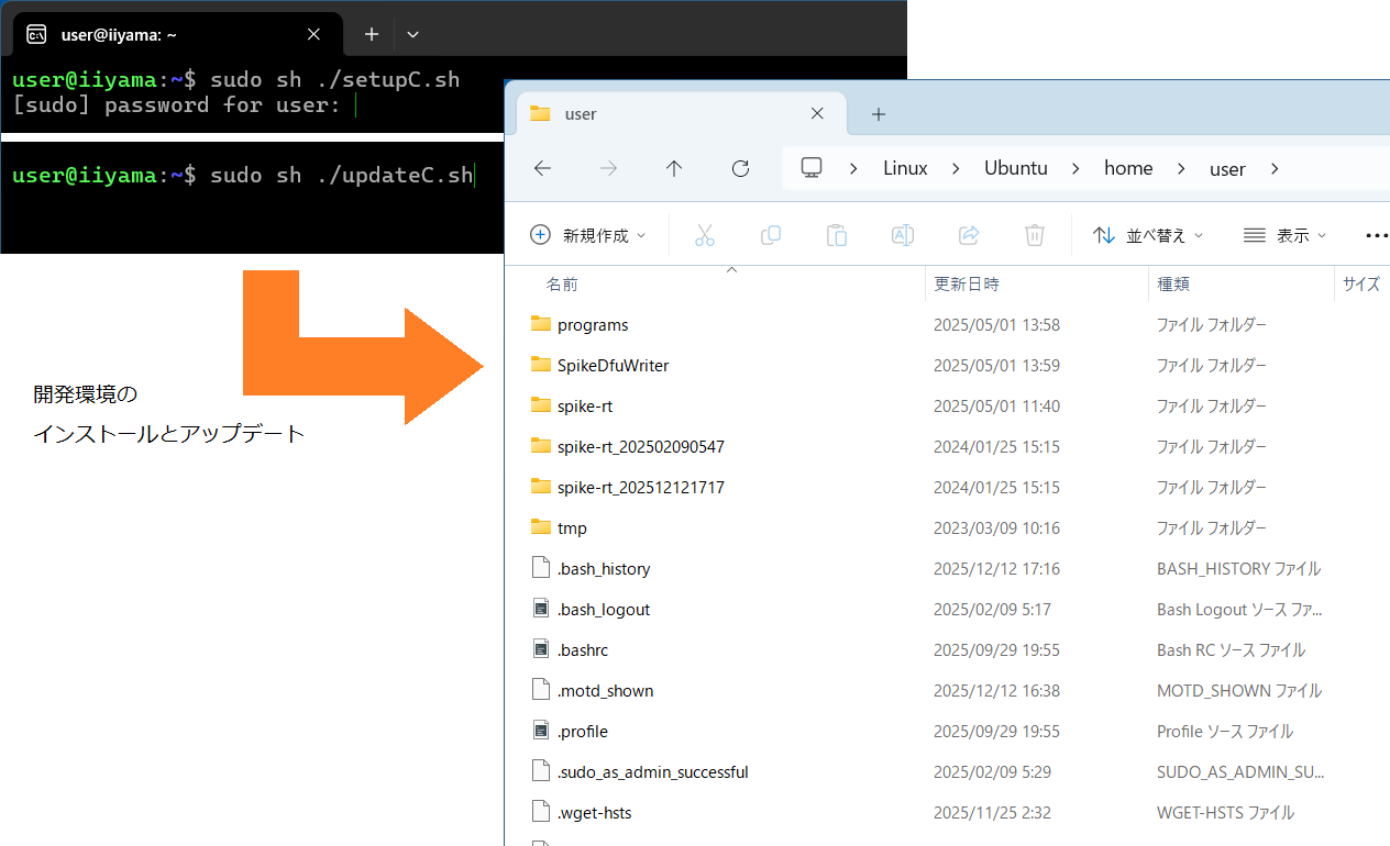 SPIKE-RTの主な特徴は「リアルタイムOS」であることです。リアルタイムOSなので、厳密に時間を管理した制御を行うことができます。SPIKE-RT自体は無償で入手することができます。SPIKE-RTの開発環境の対応OSはUbuntu(Linux)です。Windows搭載パソコンの場合、WSL(Windows Subsystem for Linux)という機能を使うと、Ubuntuを動かすことができます。