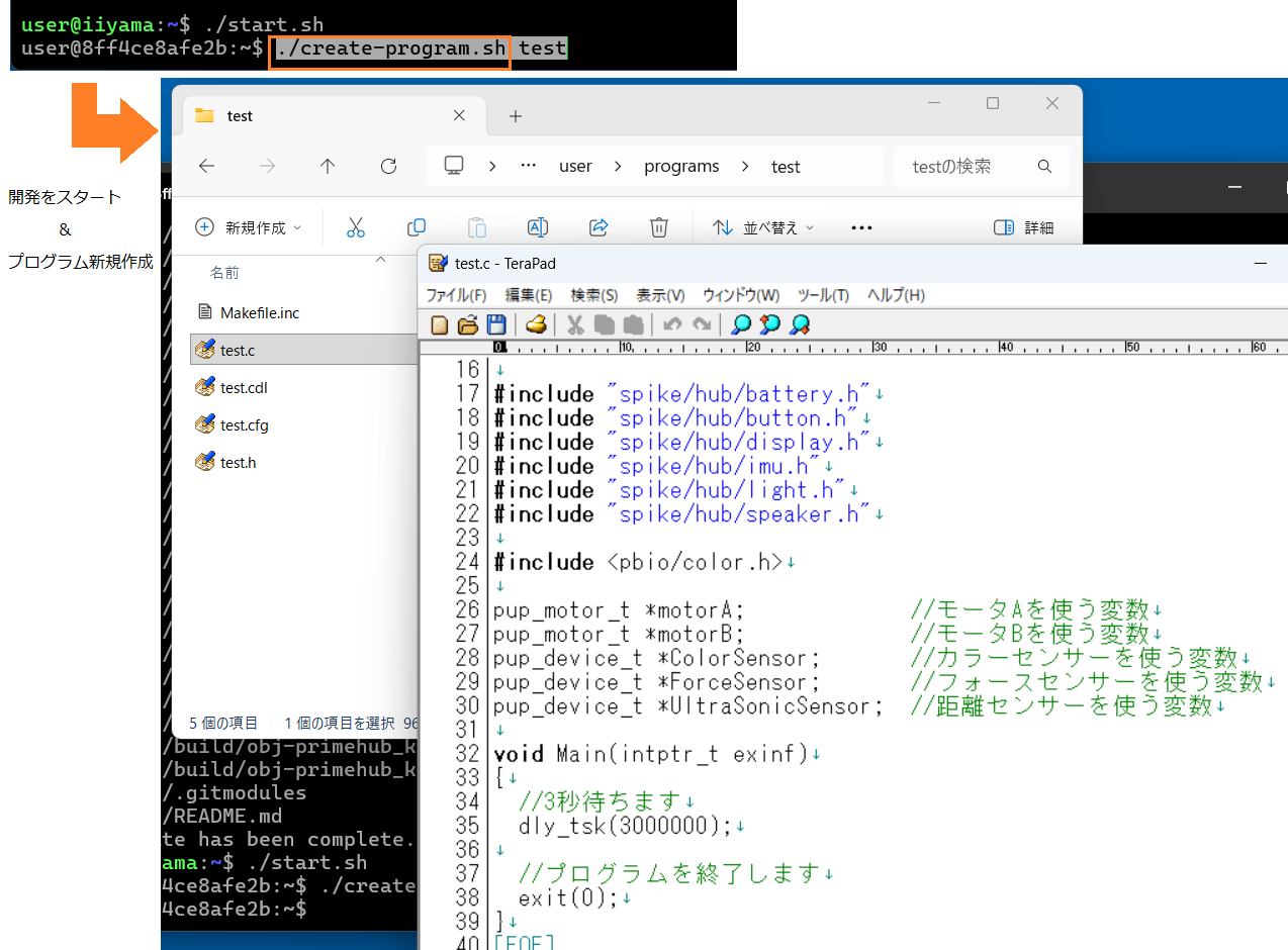 ・「programs」フォルダ:ユーザーが作成中のプログラム。