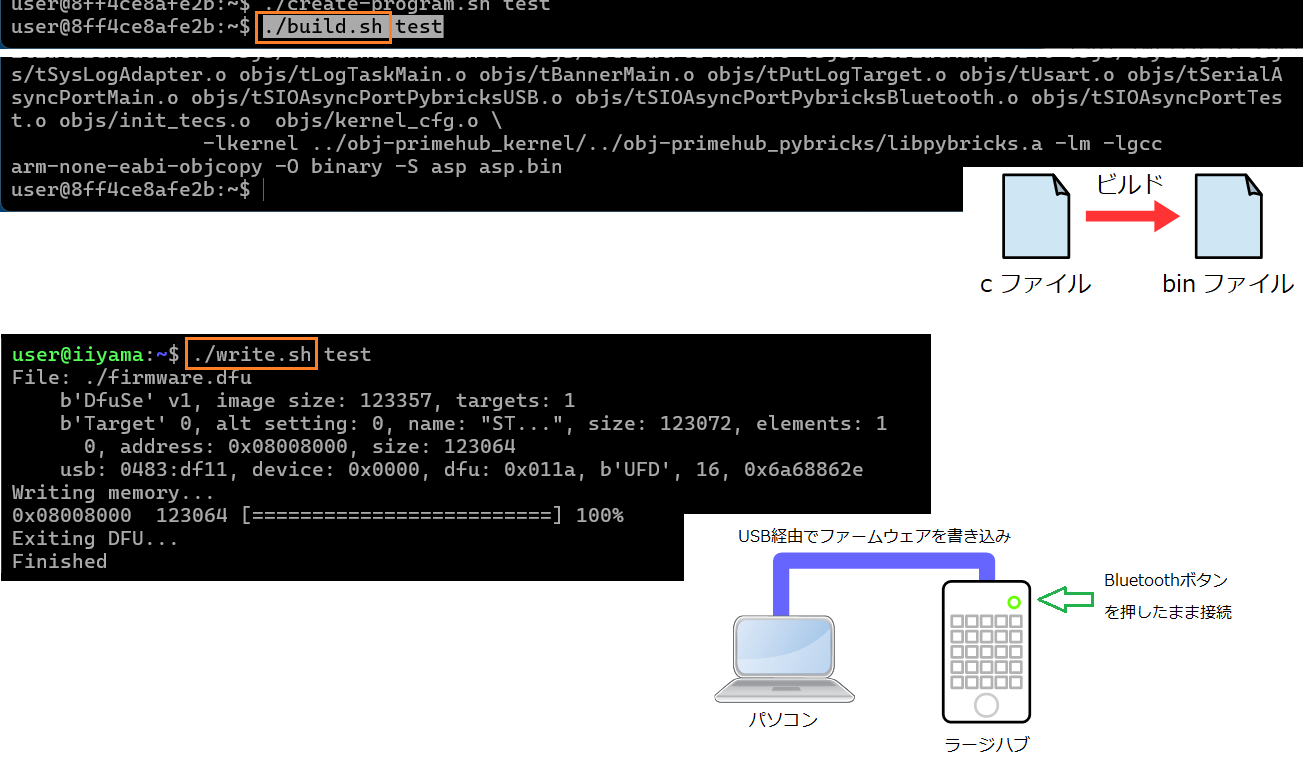 一度、SPIKE-RTのファームウェアを書き込むと、純正のファームウェア(ハブOS)は消えるので、以後、SPIKEアプリが使えなくなります。SPIKEアプリを使いたい場合には、「./write.sh spike-3」コマンドを実行して、純正のファームウェアに戻しましょう。