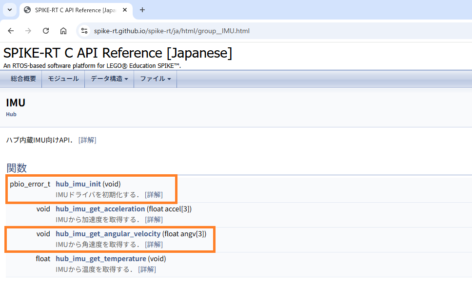 SPIKE-RTの場合、ジャイロセンサーと呼ばず、IMU(Inertial Measurement Unit:慣性計測ユニット)と呼んでいます。